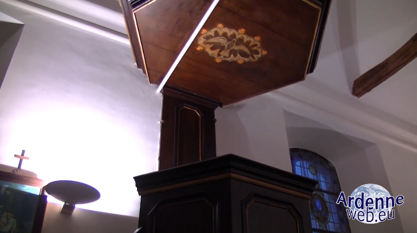 A l’intérieur du clocher se trouve un vrai trésor, une cloche fondue en 1700 par Joseph JORIS, maître fondeur de Saint Hubert. Ici, il n’y a rien d’électrique, on sonne encore à la corde comme autrefois. Ce sont là trois siècles d’histoire qui vibrent dans l’air pour annoncer une messe.