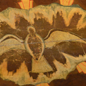 La cloche, le joug de suspension à clavettes, la roue en bois de la cloche, le battant et son attache en cuir sont d’origine.