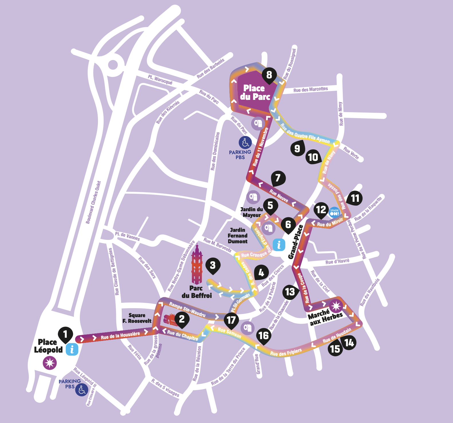 Parcours urbain dans le centre-ville de Mons