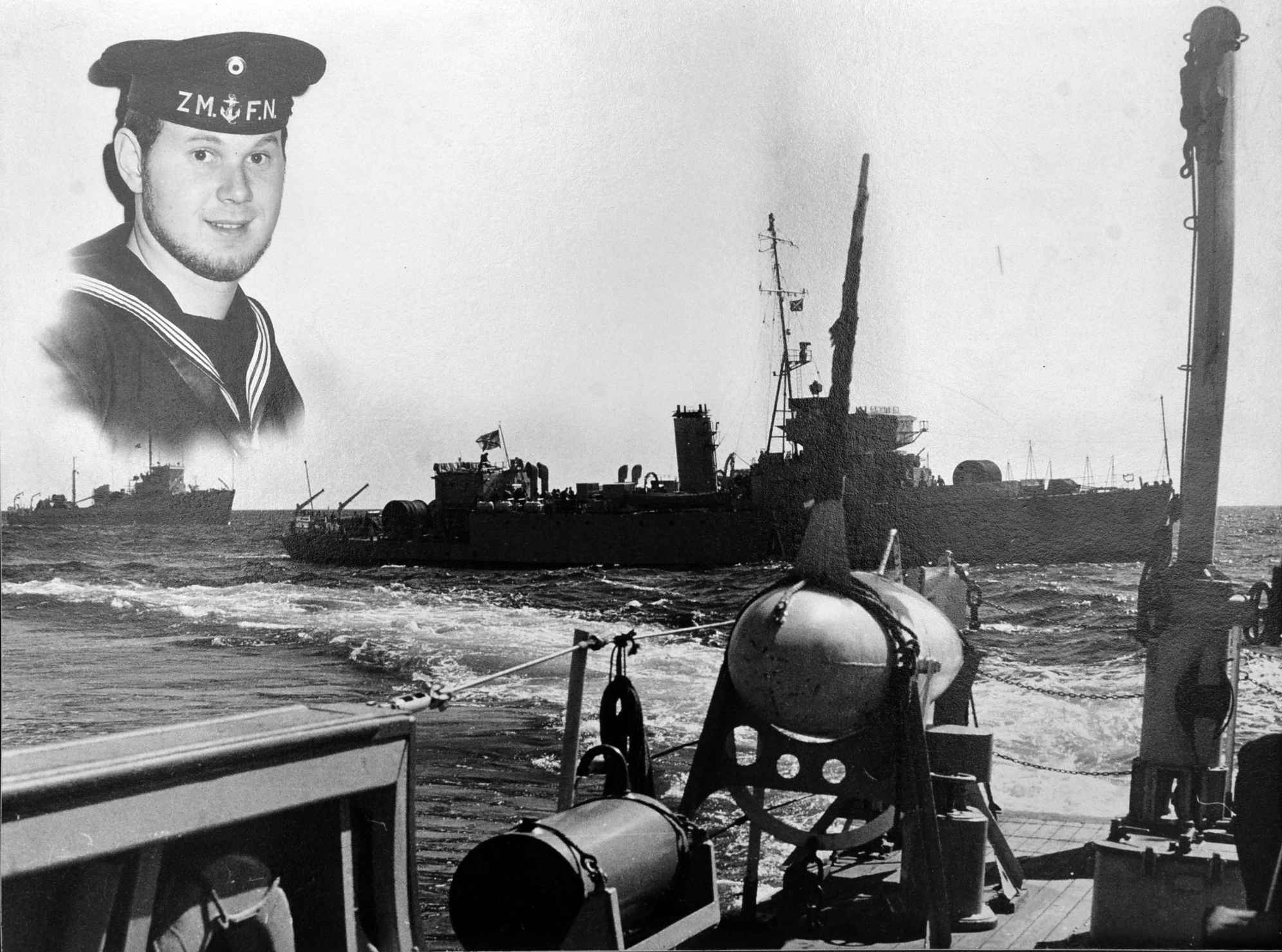 L'instruction terminée, Guy Goossens a pris la mer comme candidat officier de réserve de pont sur le Zinnia un bateau soutien logistique.