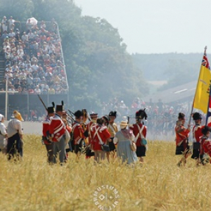 Le guide du spectateur insiste bien sur la nécessité de boire au vu des fortes chaleurs. J'ai vu trois reconstitueurs sortir du terrain suite à un coup de chaleur, pas étonnant vu l'épaisseur des uniformes.