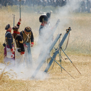 On a aussi pu admirer le lancement de roquettes anglaises, elles étaient connues sous le nom de Rockets Congreve, d'après leur inventeur, Sir William Congreve. Ces roquettes étaient une arme relativement nouvelle à l'époque et étaient utilisées par l'artillerie britannique. Elles étaient conçues pour être tirées depuis des rampes et pouvaient parcourir une distance considérable, causant des dégâts et du chaos sur le champ de bataille (même si leur impact sur le résultat de la bataille de Waterloo reste débattu).