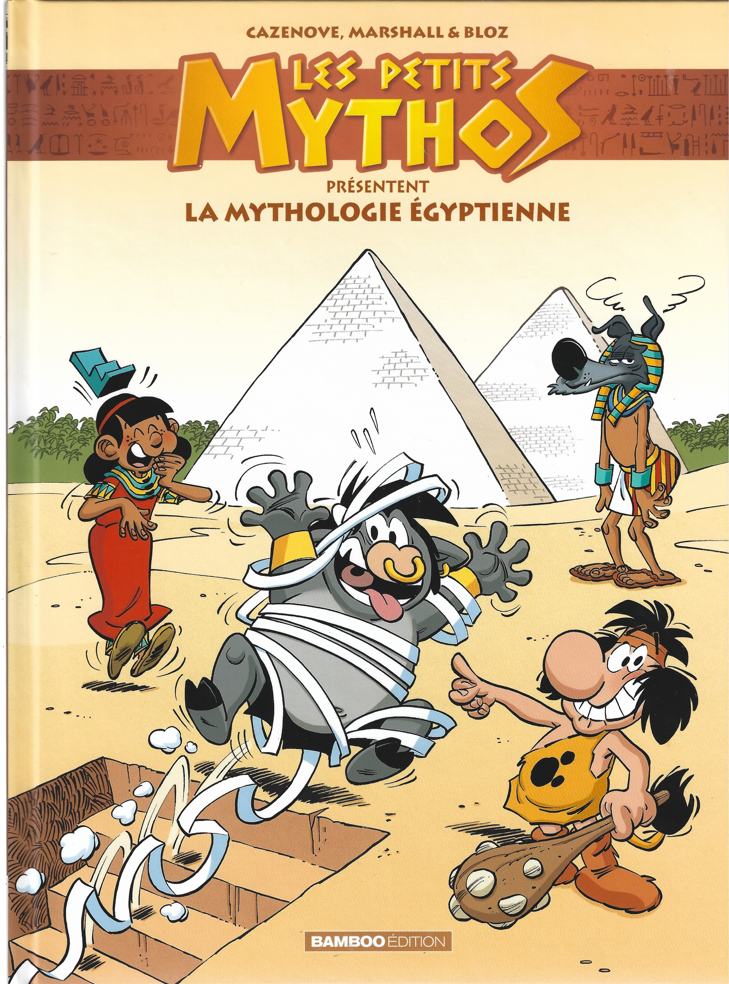 Christophe Cazenove et l’égyptologue Amandine Marshall alternent gags et pages didactiques. Et, grande nouvelle, c’est Bloz (Ping ! Les Dinosaures en BD, Le Zoo des animaux disparus) qui assure les dessins. Pas de soucis, il a reçu la bénédiction de Zeus (et de Larbier – mais on dit que les deux ne font qu’un) !