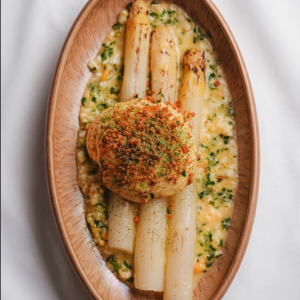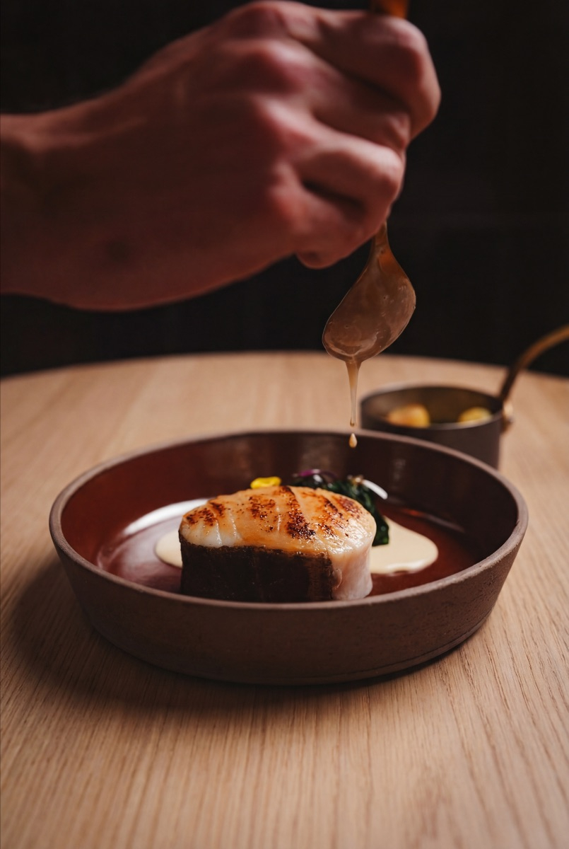 Le pari est délicat entre tradition et multiples influences. Mizaru choisit la voie de l’équilibre celle des repères familiers tout en les déplaçant légèrement. Un vol-au-vent de coucou de Malines se teinte ainsi de Tom kha kai et de galanga, tandis que les croquettes s’habillent de citron confit, de saké ou de nuances d’Asie. Même les escargots s’offrent une relecture inattendue avec miso blanc et focaccia au sésame noir. Résultat ? Une cuisine lisible et généreuse, mais traversée de nuances nouvelles. Rien n’est démonstratif, tout est dans le détail.
