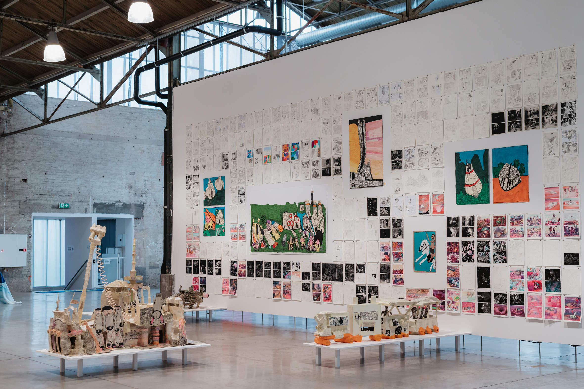 Du 27 septembre 2025 au 4 janvier 2026, le BPS22 accueille les artistes de La "S" Grand Atelier, centre d’art brut & contemporain situé à Vielsalm. Réunissant un vaste ensemble d’œuvres produites en ateliers et lors de résidences en cocréation entre artistes apparentés à l’art brut et artistes contemporains, l’exposition se déploie sur l’ensemble du musée et donne à voir une communauté artistique mixte et inclusive, où se croisent artistes avec ou sans déficience mentale, artistes facilitateurs, résidents permanents ou invités. Conçue comme un village imaginaire, celui de Novê Salm, source de nouvelles perspectives pour la création et la vie collective, l’exposition cherche à réinventer la manière de faire communauté, en conjuguant singularité et engagement.