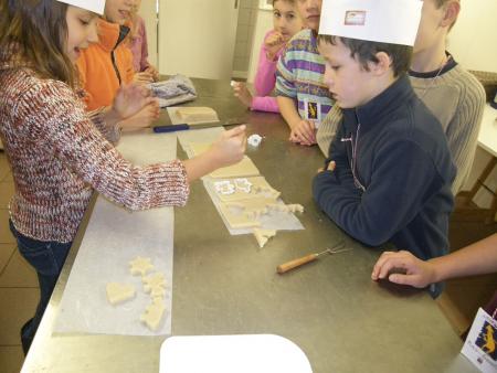Ils ont ainsi pu chacun réaliser une forme découpée en massepain, qui sera ensuite trempée dans le chocolat au lait et décorée de brésilienne ou autre décoration suivant la fantaisie de chaque enfant.