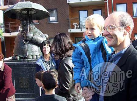 Hotton, inauguration d'une statue et de la Place du Chat par Philippe Geluck