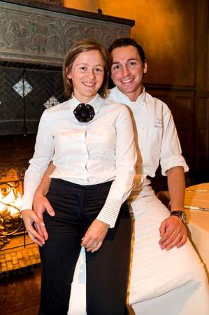 Entourée d’une excellente équipe bien drillée de maîtres d’hôtel et d’un sommelier sous la direction de Sophie, nous retrouvons une équipe résolument jeune avec Sophie,Karen, Sammy, qui prouve d’évidentes qualités d’aspirante sommelière. L’image même d’une équipe gagnante