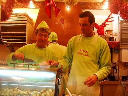 Le marché de Noël (Weihnachtsmarkt) commence le premier dimanche de l’avent et dure six semaines. Le plus ancien daterait de 1648, me disait la sympathique guide Maryvonne Finck (mmfinke@t-online.de). Déguster une Bratwurst (saucisse) et un Glühwein (vin chaud) sur le pouce dans une des échoppes reste un souvenir agréable.