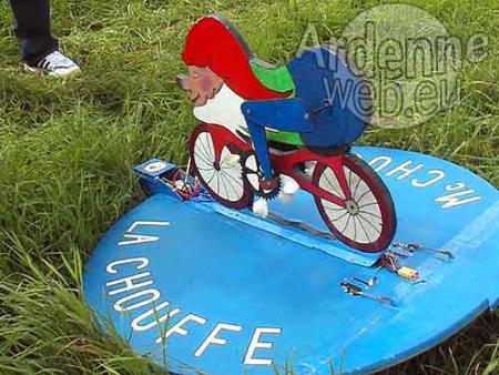 Le chouffe volant est un nain unique au monde. Son poids est de 3,3 kg et il peut vous suivre 5 à 6 minute avant de se cacher à nouveau dans les bois. Non, vous n'avez pas bu trop de Chouffe mais vous venez de rencontrer l'invention de Christian, un des patrons d'une petite brasserie qui se passionne pour le nain "Ultra-Léger-Motorisé": The Flying Chouffe. Le chouffe volant vole régulièrement au dessus d'Achouffe pour vous aider à découvrir la brasserie d'Achouffe qui vient justement de clôturer sa Grande Choufferie annuelle.