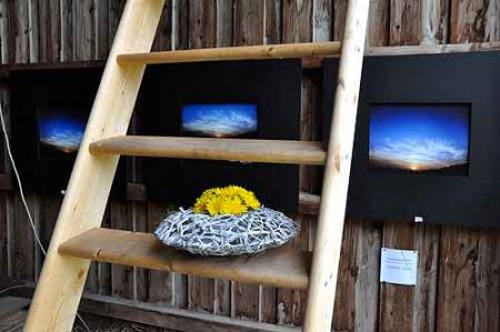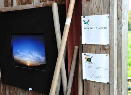 Sans vernissage, l’exposition est présentée, sobrement sur le lieu de travail/vie, dans la grange même et sous les cieux complices de la plupart des photographies.