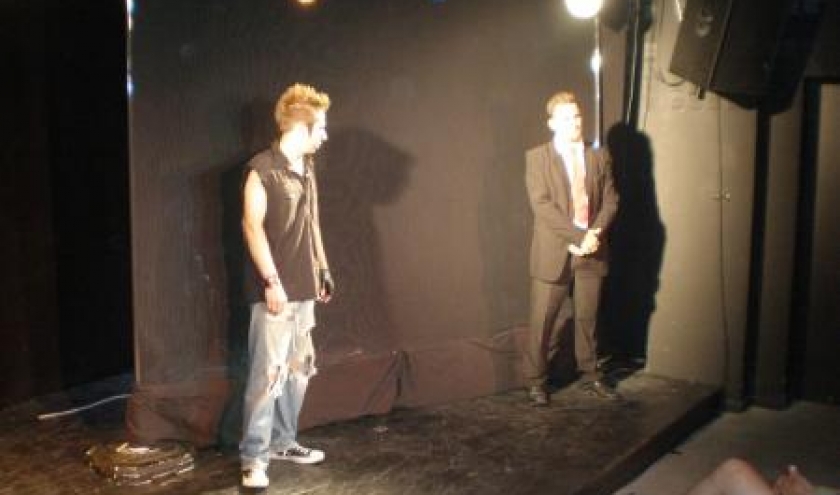C’est ce qui m’est arrivé en choisissant le spectacle « Légendaire » proposé à 20h00 au théâtre de l’Observance. C’est une pièce policière où les acteurs sont sur scène mais aussi projetés sur une toile de cinéma. Ils entrent et sortent de la scène et du film. Ils sont aussi derrière la toile lorsque la projection cesse, ils apparaissent par transparence derrière l’écran. C’est un jeu subtil et bien construit. Le suspense est bien entretenu sur base d’un scénario crédible et parfaitement interprété. Jack Burn, star du rock et son garde du corps Walter, sont enlevés et ficelés sur des chaises dans une cave. Sur scène c’est l’espace derrière la toile. Qui a fait le coup ? Les deux hommes se remémorent les événements des dernières heures. Flashbacks et sauts dans le temps, apparaissent sur la toile ou se déroulent dans l’espace à côté de l’écran qui représente le loft de la star.