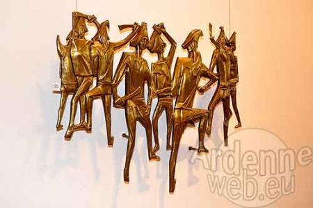Rentrées dans notre vallée, nous avons alors rêvé d'organiser une exposition qui rassemblerait des artisans belges et français sous un même chapiteau mais dans deux endroits différents, Dinant et Maredret. La co-production avec le CCRD était incontournable, l'accueil et les judicieux conseils de Marie-Christine et son équipe ont été précieux pour les néophytes que nous étions. Les invitations en Belgique et en France ont été lancées et ont répondu pour les deux pôles 8 artisans belges et 4 français. Nous pouvons les remercier chaleureusement pour la confiance qu'ils nous ont accordée. Mais, après 1 an et demi de travail, de rencontres, de conseils, de porte à porte, nous voilà réunis ce soir autour d'une panoplie d'artistes riche en surprises par leur différence mais soucieux d'honorer une même cause "le travail du cuivre".