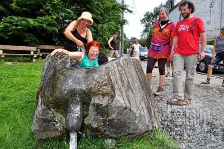 Vivez en direct notre reportage de l'inauguration de St Greluchon, déesse de la fécondité d'Engreux née sous les ciseaux de Philippe Ongena et de la Théurgie de Jacques Jaminon.