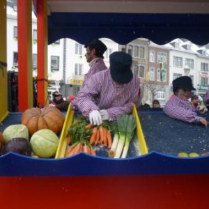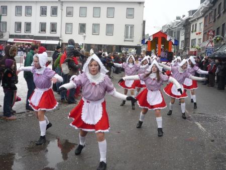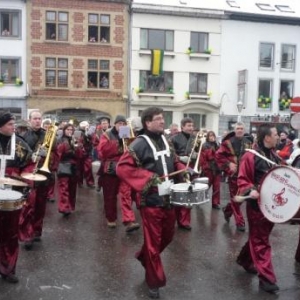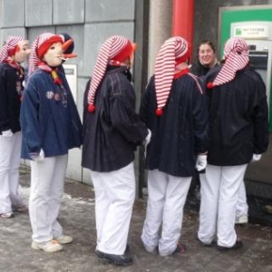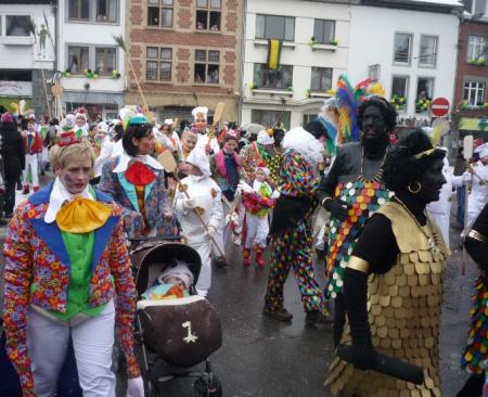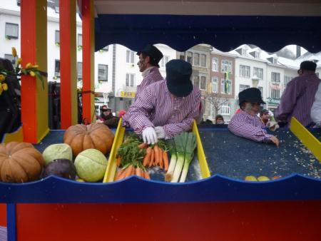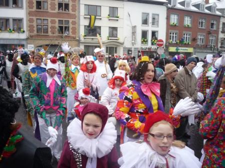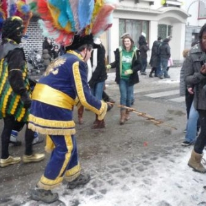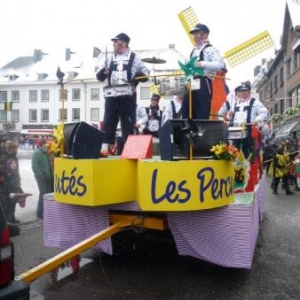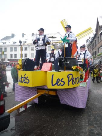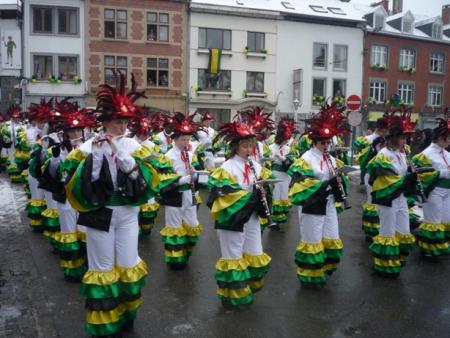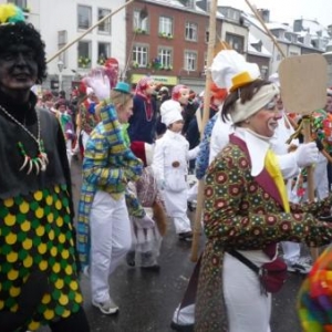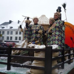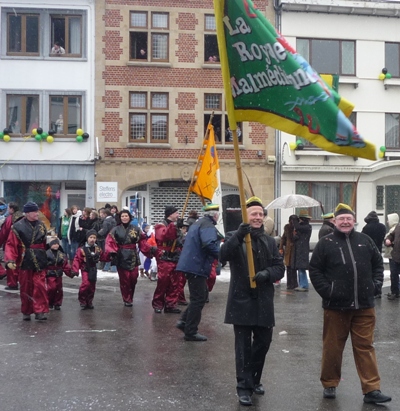 Le ciel n’aura pas été clément pour cette édition puisqu’une pluie de neige fine n’a pas cessé de tomber durant toute la journée de dimanche. Mais il en faut plus pour décourager les participants de cette parade folklorique wallonne qui, durant plusieurs mois, auront mis au point costumes, chars et animations de cette journée culminante des festivités. Dès midi, la danse de la haguète aura occupé la Place Albert 1er. A 13.30 h, le cortège composé des sociétés locales et de leurs nombreux sympathisants parcourt les artères de la Cité, précédé par le "Trouv'lè", figure emblématique et détenteur du pouvoir durant ces quatre jours. Le Syndicat d’Initiative local a fait parvenir aux habitants un lot de ballons destinés à décorer les demeures aux couleurs locales. Les masques traditionnels dont les origines remontent loin dans le temps ainsi que les nombreux « petits rôles » taquinent le public, venu moins nombreux cette année en raison des conditions climatiques. Les costumes chatoyants et très colorés ont épaté un public parfois clairsemé qui participait de bon gré aux jeux proposés par les acteurs de rue. De nombreux chars élaborés par les sociétés et groupements locaux et régionaux complétait ce cortège typiquement wallon, et ceci à quelques encablures de la région germanophone. La parade animée arrivant à son terme, les « bânes corantes » se poursuivaient dans le centre de la localité avant le bouquet final où chaque formation musicale participant au cortège est mise à contribution. Les spectateurs pourtant équipés en conséquence, recherchent alors boissons chaudes et autres victuailles telles saucisses et marrons chauds afin de récupérer les énergies dépensées. La journée du dimanche se prolongealors par la tournée des nombreux bistrots et restaurants ou encore par un passage "obligé" à la partie dansante tenue en la salle de « La Fraternité ». ( 145 photos )