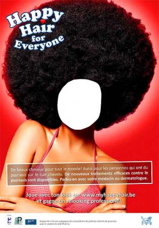 Les visites offertes chez le coiffeur cadrent dans la campagne Happy Hair. Ce projet est une initiative conjointe des associations de psoriasis Psoriasis-Contact, GIPSO et Psoriasis Liga Vlaanderen. Elle bénéficie de l'appui de LEO Pharma. Découvrez la campagne sur www.myhappyhair.be