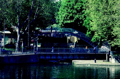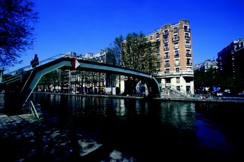 Le Canal Saint-Martin. Sur 4,5 km, dont 2 en souterrain, il relie depuis 1825 le bassin de l’Arsenal à celui de la Villette. La traversée des faubourgs populaires, ponctuée d’écluses, de ponts mobiles, de passerelles à la vénitienne, bordée de marronniers et de squares, a inspiré notre Georges Simenon, Léo Malet ou Marcel Carné dans Hôtel du Nord. C’est du petit pont du carrefour Grange-Aux-Belles-Vinaigriers qu’Arletty lance à Louis Jouvet sa célèbre réplique : Atmosphère… Du port de l’Arsenal au Parc de la Villette des croisières commentées vous font découvrir, au fil de l’eau, les 4è, 10è, 11è et 14è arrondissements.