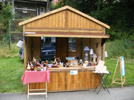 Une expo en plein air exhibe du costaud, un défi aux pires météos. On a parlé du chalet pour marchés de Noël , on ajoutera comme exemples des tables, bancs et abris de jardin, des bacs à fleurs de toutes tailles.