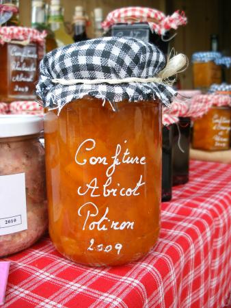 Au bout d’un étal, appétissant échantillon d’une vaste culture, s’amoncellent des confitures.