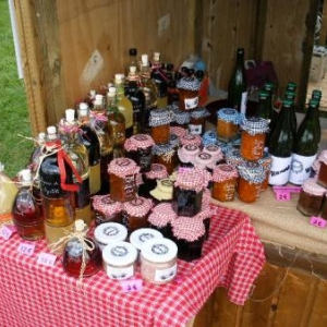 Voici des confitures et des liqueurs de toutes les couleurs.