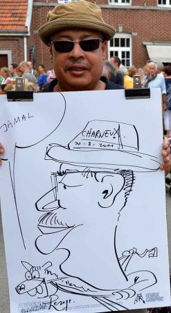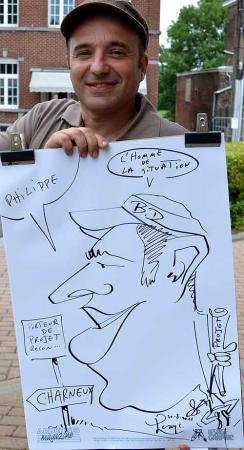 Les visiteurs de Ch'art'neux reçevaient leur caricature réalisée en quelques minutes par Jean-Marie Lesage, ce dimanche 21 août 2011.