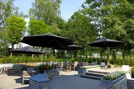 Carnet de Route et de Pérégrinations estivales / La terrasse du Coq aux Champs se situe à une quinzaine de kilomètres de Huy, à une vingtaine de kilomètres de Durbuy, à un jet de pierres du Château de Modave, au cœur du Condroz et de ses beaux villages, non loin de Liège et de la Hesbaye.