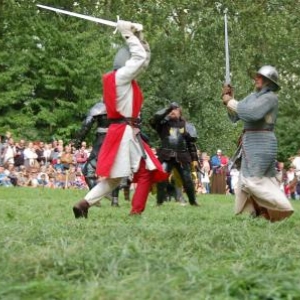 Le combat montra le rôle des spécialistes dans le maniement des épées et haches en tous genre ainsi que des archers (ces derniers de même que les cavaliers dignement représentés par la gent féminine).