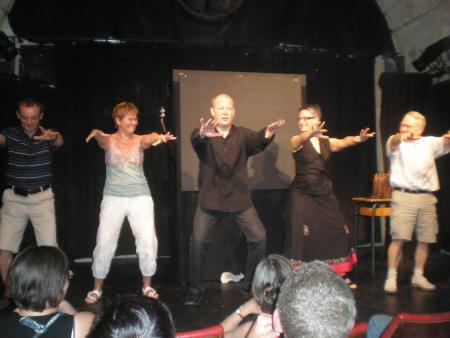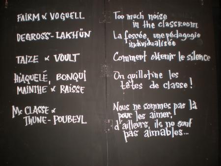 C'est sous le titre "Silence dans les rangs" que Pierre Mathues, ancien enseignant en français et actuel conseiller pédagogique en Belgique présente une "conférence spectacle" au Festival Off d'Avignon, conférence un peu spéciale… Celle-ci est sensée réveiller la petite lumière qui sommeille dans chaque enseignant, éducateur et même directeur. En fait il utilise un procédé fort simple. Il renvoie la vision que les personnes extérieures pourraient avoir des enseignants, s'ils connaissaient la réalité de l'école. Exercice périlleux, s'il en est, car ce reflet n'est pas toujours valorisant mais très éloquent. L'école est un monde où les adultes sont restés de grands enfants où les caractères semblent marqués et quelque peu bloqués. Pierre Mathues conseille en fin de spectacle: "osez bouger dans les rangs!". C'est donc un électrochoc car chaque enseignant essaye de trouver sa place dans un système, osons le dire, assez figé. Il faut sortir des sentiers battus, avoir des idées et des initiatives et ce, sans l'aide de l'extérieur! Chaque enseignant doit vivre son enseignement, dans sa classe avec ses élèves en pleine conscience du fait que ses moyens sont limités et que le peu qu'il pourra apporter permettra à quelques uns d'avancer. Cette leçon vaut bien un fromage! Vous ne direz plus que l'école va mal, mais qu'elle évolue. Vous saurez comment corriger les interrogations, rédiger les notes dans les bulletins, interpréter les circulaires, voire les rédiger, gérer les parents et les élèves, même les plus difficiles. Evaluer les élèves, communiquer avec les collègues et la direction, tout cela n'aura plus de secret pour vous. C'est en tout cas ce que prétend notre professeur du jour. Alors venez rêver avec lui, danser la "Haka" des enseignants pour prendre vos rangs! Rendez-vous tous les jours à 15h00 au Théâtre des Corps Saints du Festival Off d'Avignon.