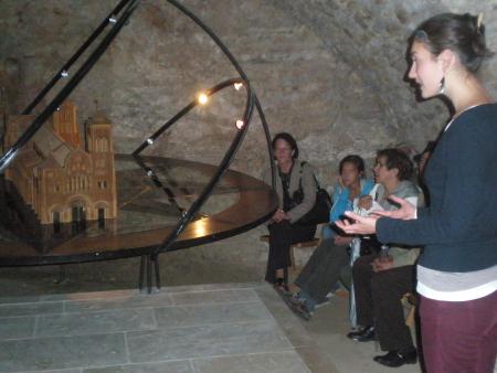 Le modeste voyageur des temps modernes que nous sommes et dont vous ferez sans doute partie un jour, ira se garer dans le bas de la ville, sans omettre d'acheter son ticket de parking, sous peine d'un procès verbal immédiat. De là, nous commençons à gravir la rue principale. Afin de mieux voir et comprendre les mystères de la basilique, un conseil, avant la visite, s'arrêter à "La Maison du Visiteur". Des guides vous feront découvrir le savoir-faire des artisans de la pierre et des moines-bâtisseurs. Pour comprendre ce grand livre de pierre et de lumière qu'est la basilique, il faut entrer en résonnance avec les symboles. Un splendide diaporama prépare les esprits aux informations qui vont être données. Pour l'approche de la symbolique de la lumière, une maquette montre la course du soleil et ses effets sur la basilique aux jours des solstices. Le plan de la basilique évoque la dimension de l'humain qui est prise en compte dans cette formidable construction. Trois chapiteaux de colonnes sont reproduits et l'un d'eux est commenté avec passion, élégance et charisme, par la charmante guide du lieu. Vous êtes prêts, il ne vous reste plus que quelques mètres et vous êtes dans l'édifice réel. Bonne visite!