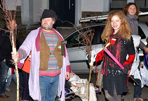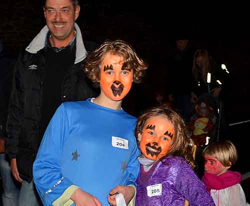 Pour créer l’ambiance, l’artiste de rue Joshua, originaire de Bérismenil, avait été engagé. Il s’est présenté à nous en Josh l’épouvantail pour accompagner le cortège et nous a présenté ensuite un spectacle de cracheur de feu sous le pseudo de « Feufollet ».