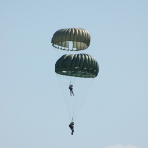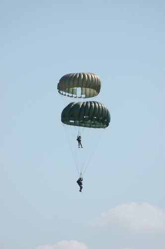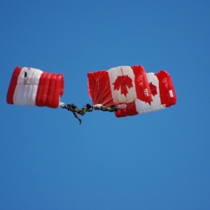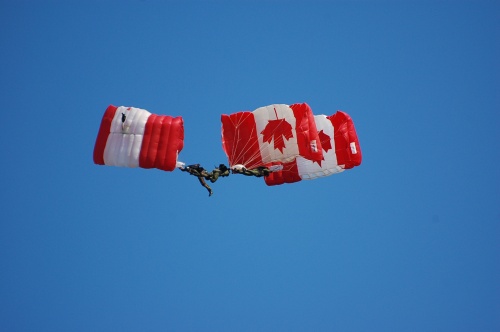 Le saut des parachustistes canadiens "Skyhawks"' en partant d'un C130 Hercules belge était impressionnant.