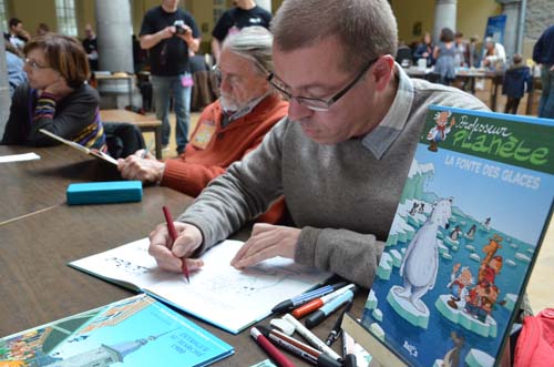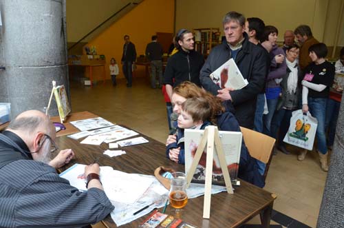 Les séances de dédicaces avaient lieu le 20 avril de 9h30 à 12h30 et de 14h30 à 18h30. Une foire aux bd et para-bd d’une dizaine d’exposants était également au programme, ainsi que des ateliers lecture, conte, coloriage ... pour les plus petits.
