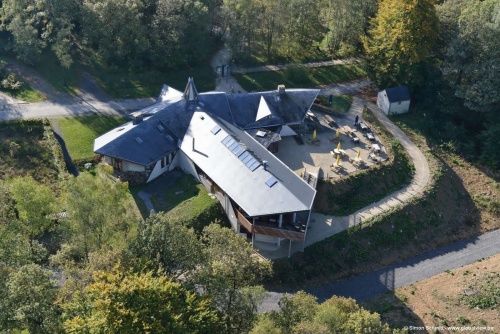• vue aerienne pavillon accueil et brasserie du parc