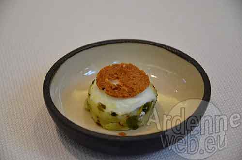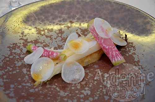 L’Air du Temps a fait du chemin … un lifting, un nombre de tables doublé. Une première étoile Michelin ! L’équipe s’agrandit. Sang Hoon Degeimbre cherche, lit et étudie, réfléchit et observe, s’exerce encore et encore. Sa volonté permanente : éveiller les papilles des convives sans discontinuer pendant tout le menu. Parfois au prix d’audaces osées. Ce sont les ‘accords improbables’. Les lectures des écrits d’Hervé This, physico-chimiste à l’Inra, et les expériences du chef font entrer les textures dans la cuisine de L’Air du Temps.