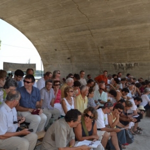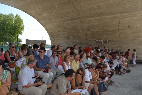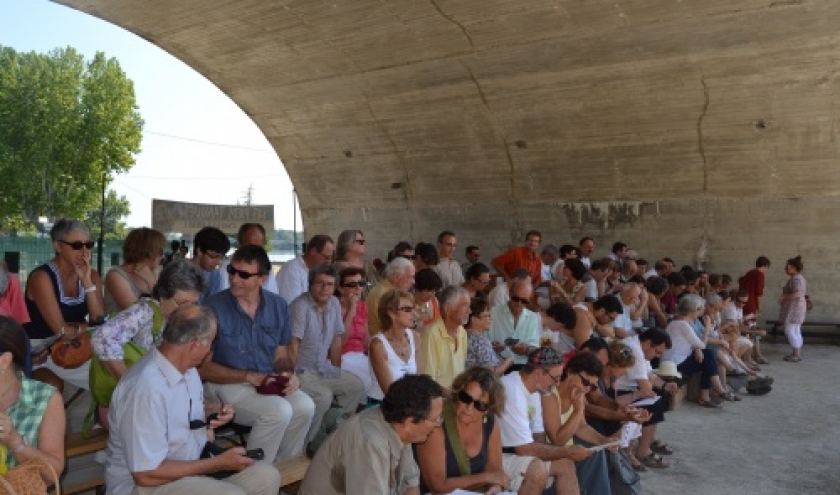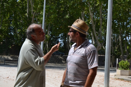 Le Festival Off d'Avignon sort du cadre, et c'est son rôle, en proposant un spectacle sous le pont Édouard Daladier, au boulodrome. Les spectateurs sont à l'ombre et les acteurs au soleil, avec en musique de fond, le chant des cigales. Donc pas besoin de projecteurs pour l'éclairage. Le sujet proposé est lui aussi, original et délicat puisqu'il traite de la guerre d'Algérie. Algériens, Autochtones, Harkis, Pieds Noirs, Partisans de l'OAS, comment tout ce petit monde peut-il vivre ensemble ? Faut-il continuer à garder le silence, sur les faits et les émotions provoquées par cette guerre ? Philippe Chuyen, auteur et metteur en scène de ces "Pieds Tanqués", pense le contraire. Il convient de se libérer, d'échanger et de communiquer, ici, le temps d'une partie de boules. Chacun de son point de vue a sans doute raison, mais l'exprimer permettra, par la suite, de mieux vivre les différences et de construire une société proche du bonheur idéal. L'émotion est palpable tant sur scène que sur les tribunes. Le sujet est loin d'avoir été enterré, il a laissé d'énormes traces dans la société française. Les interprètes jouent de façon remarquable, outre l'auteur lui-même en Monsieur Blanc, Sofiane Belmouden dans le rôle de Yaya, Gérard Dubouche en Pied-Noir et Thierry Paul joue Loule, le Provençal. Jean-Louis Todisco avec son accordéon et ses chansons, permet, dans les moments graves, de prendre une bonne goulée d'air et de détendre l'atmosphère.