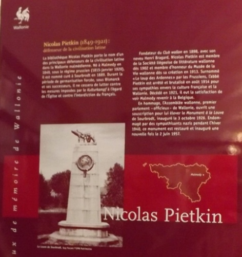 est né à Malmedy en 1849 sous le régime prussien et y est décédé en 1921. Ce prêtre et militant wallon s’est obstiné, dès 1889, à Sourbrodt où il officiait à organiser tout en français, les sermons, le catéchisme et les chants pour résister à la politique officielle de germanisation sans toutefois exclure ses paroissiens de langue allemande. Quand la pression se fait plus forte sur le français, il passe au wallon. Peu après le début de la 1ère guerre mondiale, il est arrêté et brutalisé par les Allemands à cause de ses sympathies francophiles et wallonnes. Surnommé « Le loup des Ardennes » par les Allemands, il avait fondé le Club wallon en 1898 avec son neveu Henri Bragard. Aujourd’hui, la bibliothèque du Club wallon porte son nom, celui d’un des principaux artisans du retour de Malmedy à la Wallonie en 1919.