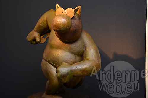 En quelque sorte ‘retrouvailles’ avec l’actualité du Chat après le dernier dessin dans le Soir du 22 mars dernier, l’exposition à la Galerie Liehrmann à Liège est aussi emblématique de ses 30 ans et de sa vie ‘nouvelle’. En belle maturité, le Chat se révèle en un surprenant RAWHAJPOUTACHA : empreint de zénitude, hommage discret au fakir de Tintin et le Lotus bleu que décèleront rapidement les tintinophiles. Œuvre de sagesse, d’humour, de poésie, la sculpture témoigne d’une vraie maîtrise technique toute entière contenue dans le bec des vaillants oisillons qu’il s’agisse de la sculpture en résine ou de sa réalisation en bronze patiné.
