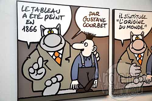 Il est vrai que le rapport avec l’art, ses grands maîtres – de Courbet à Pollock – et autres icônes – de Mona Lisa à la Vénus de Milo – est un jeu pastiche dans lequel le Chat et Philipe Geluck excellent.
