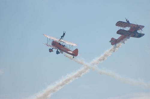 Les Breitling windwalkers étaient présents (vus à Fairford cette année), les jeunes femmes se livrant à des mouvements acrobatiques en vol en même temps que les avions les portant!