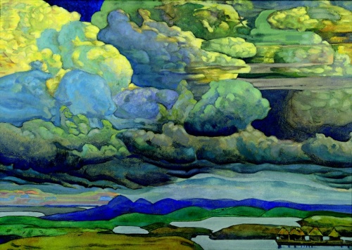 • Nikolaj Roerich, Veldslag der hemelen, 1912, Waterverf op karton, 66 x 95 cm, copyright Russian Museum, St. Petersburg