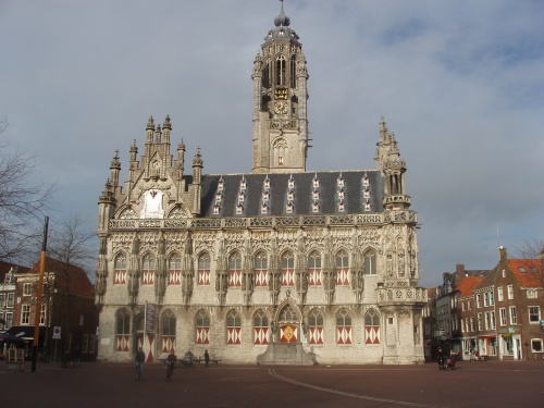 Au retour, faisons un arrêt à Middelburg. La ville ancienne est entourée de canaux et de fossés marquant les limites de son enceinte fortifiée. Deux moulins de rempart du XVIIIe siècle s'y dressent encore. L'Hôtel de Ville du XVe siècle se dresse majestueusement sur le Markt (Grand-Place). Un beffroi de 55m, cantonné de quatre clochetons, domine l'ensemble. L'Abbaye du XIIe siècle est aujourd'hui le siège du gouvernement provincial de Zélande.