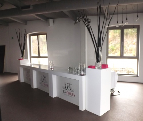 Au début du nouveau millénaire, de multiples péripéties de gestion et la conjoncture économique de l’époque ont eu raison de la papeterie Intermills de Malmedy ( ancienne papeterie Steinbach ). En 2011, l’ensemble du site est racheté par le groupe Gehlen en vue, après démolitions et / ou réhabilitations, d’y aménager divers pôles faits d’habitations, de bureaux, et autres services encore. Il ne pouvait être question que ce site industriel autrefois important pour Malmedy et sa région ne devienne un chancre fait de ruines et de désolation. En cinq mois de travaux seulement, l’entreprise a réhabilité tous les bureaux administratifs du site en un centre Business & Event. Les travaux (d’une valeur de + – 2 500 000 € ) ont été pris en charge par de nombreuses entreprises de la région. Des retombées économiques positives devraient également découler de ce projet tels les traiteurs, les fleuristes, les hôteliers qui ne manqueront pas d’être sollicités pour l’organisation des événements dans ce vaste complexe. Pas moins de 11 salles ont été aménagées, d’une capacité de 12 à 300 personnes. Et quelle résultat ! Gehlen Group peut se féliciter d’avoir réussi son pari fou : allier modernité et respect de l’architecture des lieux pour donner au site une affectation faisant défaut dans la région. Des poutres originelles, des escaliers et des boiseries conservées, le parquet de la salle Steinbach restauré, des locaux auxquels des noms évocateurs tels que Steinbach, la Cuve, les Calandres, le Barytage, le Moulin, la Papeterie,… qui désignent les différents locaux. L’aspect industriel est ainsi toujours bel et bien présent. Les différentes salles peuvent accueillir les manifestations les plus diverses : séminaires, colloques, réunions, conférences, mariages, communions, baptêmes, soirées… Les différentes ambiances qui règnent dans ces salles privatives et les aménagements technologiques réalisés permettront à tous types d’événements de s’y dérouler. Cinq cuisines professionnelles équipées et pourvues de monte-charge, des bars, des systèmes de sonorisations, des projecteurs, un ascenseur pour permettre l’accès aux personnes à mobilité réduite, des vestiaires, une salle de jeux pour enfants, une salle aménagée pour le repos des bébés… Du mariage à la réception d’entreprise, tout semble avoir été pensé pour que rien ne manque au confort des utilisateurs. Un musée de l’industrie papetière a été conçu ainsi qu’une galerie d’art ayant rapport avec ce matériau ont pris place dans les anciens locaux des laboratoires. Les Malmédiens et nombre d’anciens ouvriers ont eu l’occasion de visiter les lieux lors d’une journée « Portes ouvertes » et ont pu constater que le cadre de vie et de travail avait été conservé.