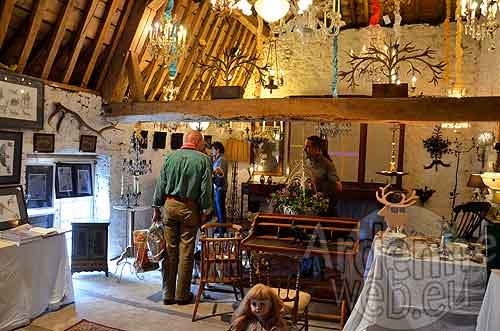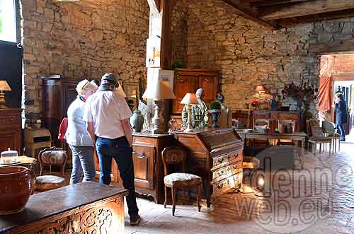 Lors du week-end de Pentecôte, brocanteurs et antiquaires se partagent entre des espaces intérieurs – sous la belle charpente de chêne de l’ancienne ferme, dans les fenils, la chapelle privée, l’orangerie – et le grand air : allée des tilleuls, cour d’honneur, jardins, basse-cour … où se déploient les tonnelles blanches de belle allure.