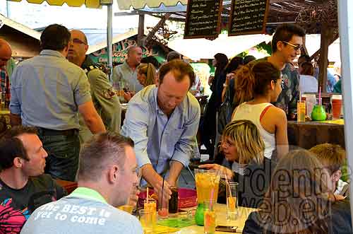 Les produits wallons ne seront pas en reste, avec la présence en force de la viande de bœuf de Wallonie, servie en carpaccio bien frais mais aussi en côtes à l’os gourmandes, jouxtant les bières de Chimay, de Valdieu, d’Achouffe, des Ursulines ou d’ailleurs, les tendres boulets à la liégeoise, les ravioles artisanales préparées à partir de produits du terroir, les salades variées et autres grillades savoureuses, les vins de fruit, et bien sûr le pèket nature ou citron,… Au Village Gaulois, si on peut y faire la fête en se désaltérant, on peut plus qu’avant encore y faire bombance en partageant moult pitances avec ses amis de toujours ou de rencontre…
