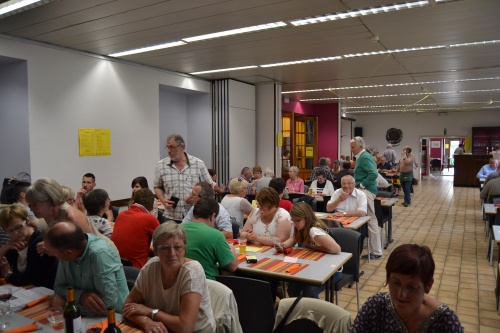 Rochefort, dimanche, dès 7 h du matin, les brocanteurs étalaient leurs marchandises tandis que le personnel et les bénévoles mettaient la dernière main pour préparer la venue des nombreux touristes. Les amateurs de vélos enfourchaient leurs bécanes pour deux circuits de distances différentes selon l’envie de chacun. Le ministre de la mobilité et ancien Bourgmestre de Rochefort, François Belot, à donné le départ. C’est un grand honneur pour l’association Accueil Famenne. Une animation musicale était prévue toute la journée et des jeunes présentaient des exercices de jonglerie. Pour les familles, des activités étaient organisées, cependant, la marche a dû être annulée, car la pluie s’était mise à tomber. Des bars et de la restauration étaient prévus à midi et le soir. De nombreux couverts ont été servis dans une ambiance très conviviale et certains sont même rentrés en chantant. Les bénéfices de cette manifestation serviront à poursuivre l’action menée par l’ASBL depuis des années.