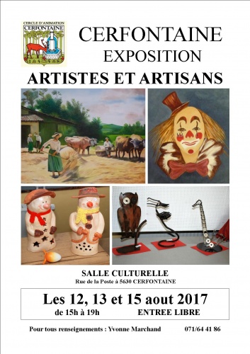 CERFONTAINE, EXPOSITION ARTISTES ET ARTISANS, Les 12, 13 et 15 aout 2017