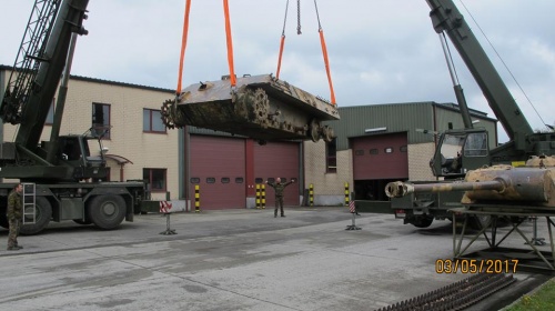Mai 2017. Le tank , ainsi que l’appellent les Houffalois, vient de quitter son emplacement pour une rénovation qui va durer… un certain temps.