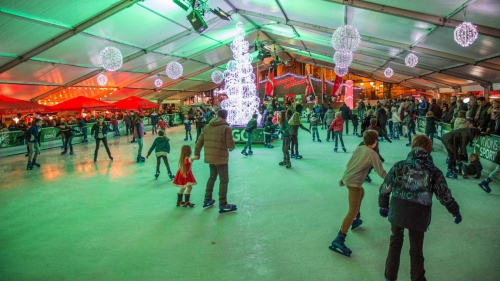 … Quand aux visiteurs qui souhaient patiner, ils doivent se rendre à la Place Cathédrale, la patinoire étant entourée de chalets nous proposant leurs spécialités gustatives…