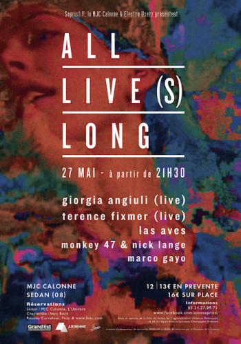 Ensemble nous vous proposons un tour de piste européen de ces nouvelles musiques faites d’hommes et de femmes, de machines et d’instruments divers et variés... La programmation sera la suivante : les français de « Las Aves » avec leur dansant Art Pop-Heavy Wave. Puis « Giorgia Angiuli », entre house et techno comme une soeur transalpine de Jacques. Ou encore le berlinois d’adoption Terence Fixmer avec son set entre techno EBM et electronica.