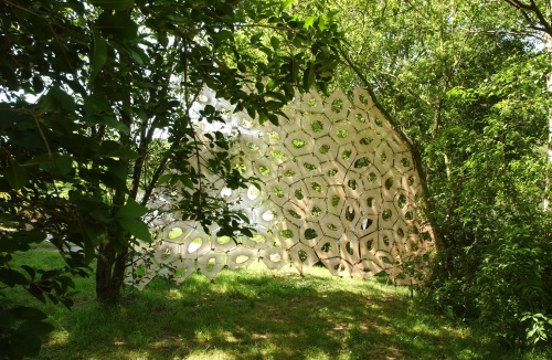 Présente en 2012, Aurore Vandember nous reviendra, interprétant cette fois un antre d’osier dont Brigitte lui aura réservé la surprise. C’est depuis 2002, qu’Aurore réalise des installations essentiellement faites en bas nylon. Trois fois rien … faisant vibrer la matière et la lumière, égrenant l’infini de l’éphémère et du mouvement. Le nylon découpé, sculpté, tendu, suspendu d’Aurore apparaît dans une œuvre inattendue rythmant l’espace, effleurant le sensoriel en motifs transparents.